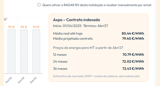Além da análise do contrato atual, o RX da Energia oferece uma visão contínua através do Radar RX.